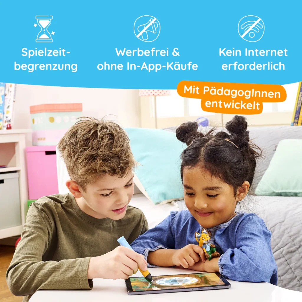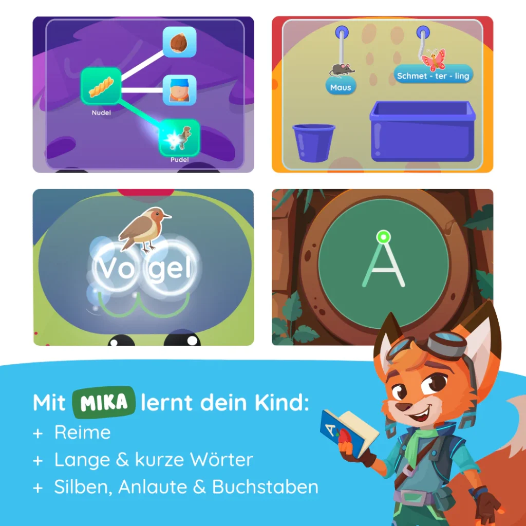 Mit „Edurino – Wörter und Sätze“ mit Superheldin Mika tauchen Kinder mithilfe eines magischen Eingabestifts in eine interaktive Lernwelt ein. Gemeinsam mit Mika erkunden sie Buchstaben, Laute und Wörter, lösen Aufgaben und helfen den Bewohner*innen der virtuellen Welt. Die App verbindet haptische und digitale Elemente, schult Sprach- und Schriftbewusstsein und macht den Einstieg ins Lesen und Schreiben spielerisch leicht. Durch die kindgerechte Gestaltung, abwechslungsreiche Übungen und die motivierende Geschichte wird Lernen zu einem spannenden Abenteuer mit hohem Spaßfaktor.