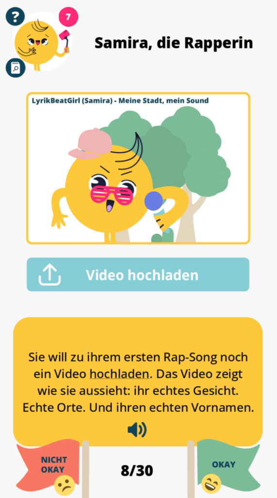 „Flag it!“ führt Kinder und Jugendliche spielerisch an Themen der Prävention im Internet heran. In drei kurzen Geschichten lernen sie, wie sie persönliche Daten schützen, Fake-Profile erkennen oder Gefahren im Netz einschätzen. Die einfache Gestaltung mit kleinen Figuren und direktem Feedback macht die Inhalte leicht verständlich und bietet einen niedrigschwelligen Einstieg in die Medienerziehung. Die klaren Rückmeldungen helfen Kindern, eigenes Verhalten sofort zu reflektieren, und sensibilisieren für Gefahren im Netz. „Flag it!“ bietet einen leicht zugänglichen, präventiven Ansatz, der sich gut für den Einstieg in die Medienerziehung eignet.