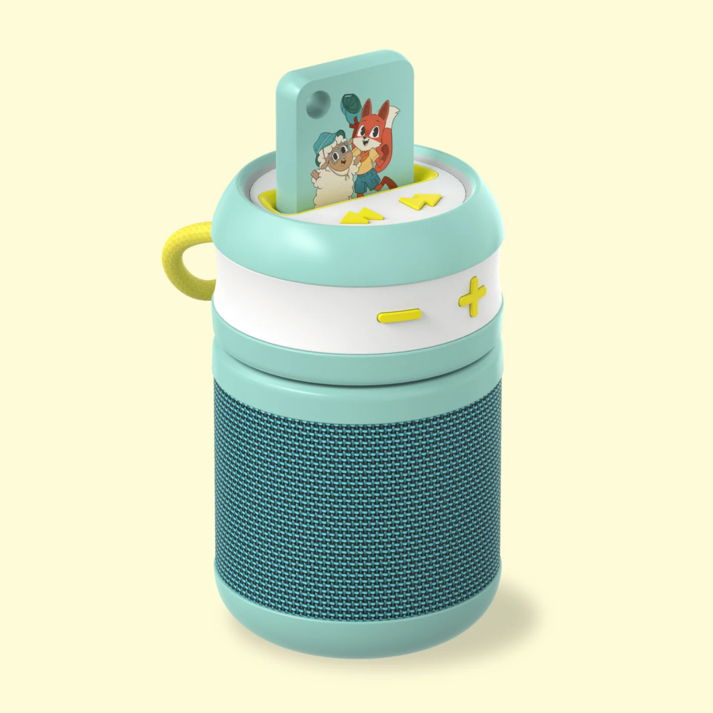 Audio-Token abspielt. Keine Internetverbindung oder App werden benötigt. Die magnetischen Audio‑Token rasten kinderleicht im Player ein und die Inhalte werden sofort abgespielt. Am Player können die Lautstärke verändert und Inhalte vor- und zurückgespult werden. Toll gelöst ist die Twist’n’Go-Funktion, mit der sich ein Teil des Players, der zwei Kopfhöreranschlüsse besitzt, vom Lautsprecher trennen lässt.