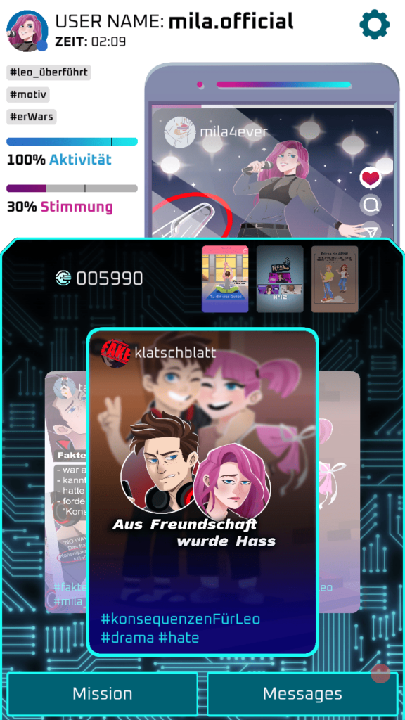 Im dritten Teil von „Facts & Fakes“ gehen wieder Schüler*innen der Frage nach, welche Informationen der Wahrheit entsprechen und welche sich als Fake herausstellen. Ganz gleich, ob sie in den Nachrichten, sozialen Medien oder durch Mundpropaganda darauf stoßen. Die Spielenden untersuchen zahlreiche Medien, um die Spreu vom Weizen zu trennen. Die konkreten Rückmeldungen und Postings helfen, diese Überprüfungsmethoden auch jenseits des Lernspiels auszuprobieren. Und großen Spaß macht das auch noch!